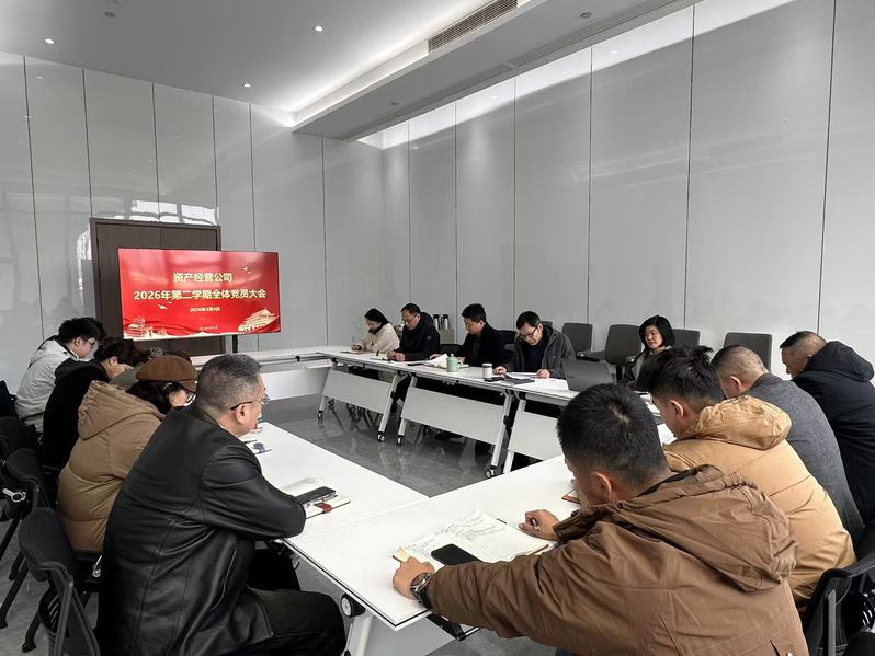 3月4日下午,资产公司召开 2026 年上半年全体员工会议。资产公司本级、科技园公司、幼创公司全体员工参加会议,会议由公司总经理、党支部书记王昱主持。
